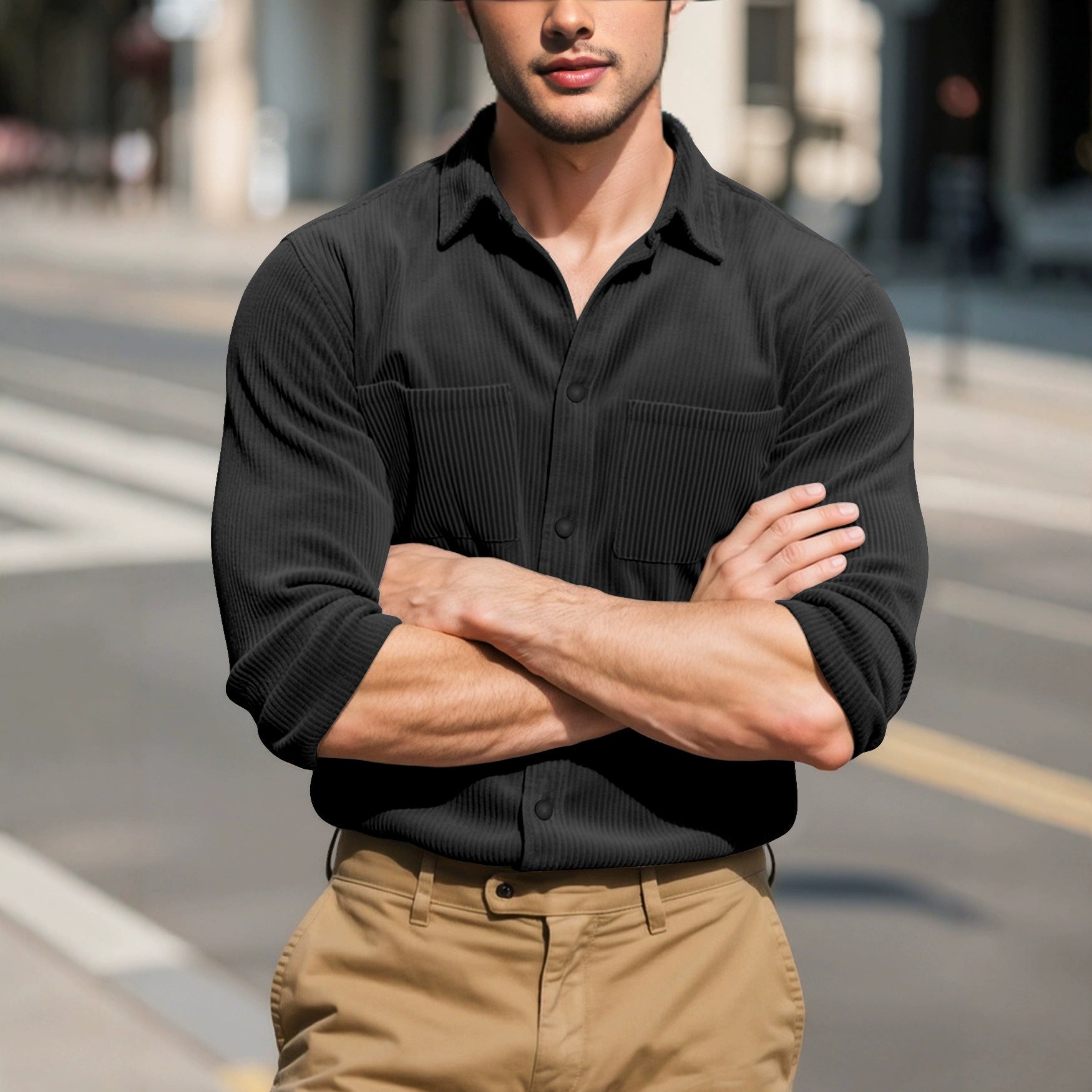 Long sleeved shirt with collar jacket for men